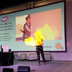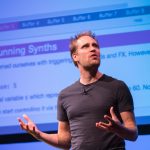 On Saturday, Dr Sam Aaron will close the show in the auditorium, live-coding music through Sonic Pi, and on Sunday, we have CBBC presenter Fran Scott who will be live-coding explosions!